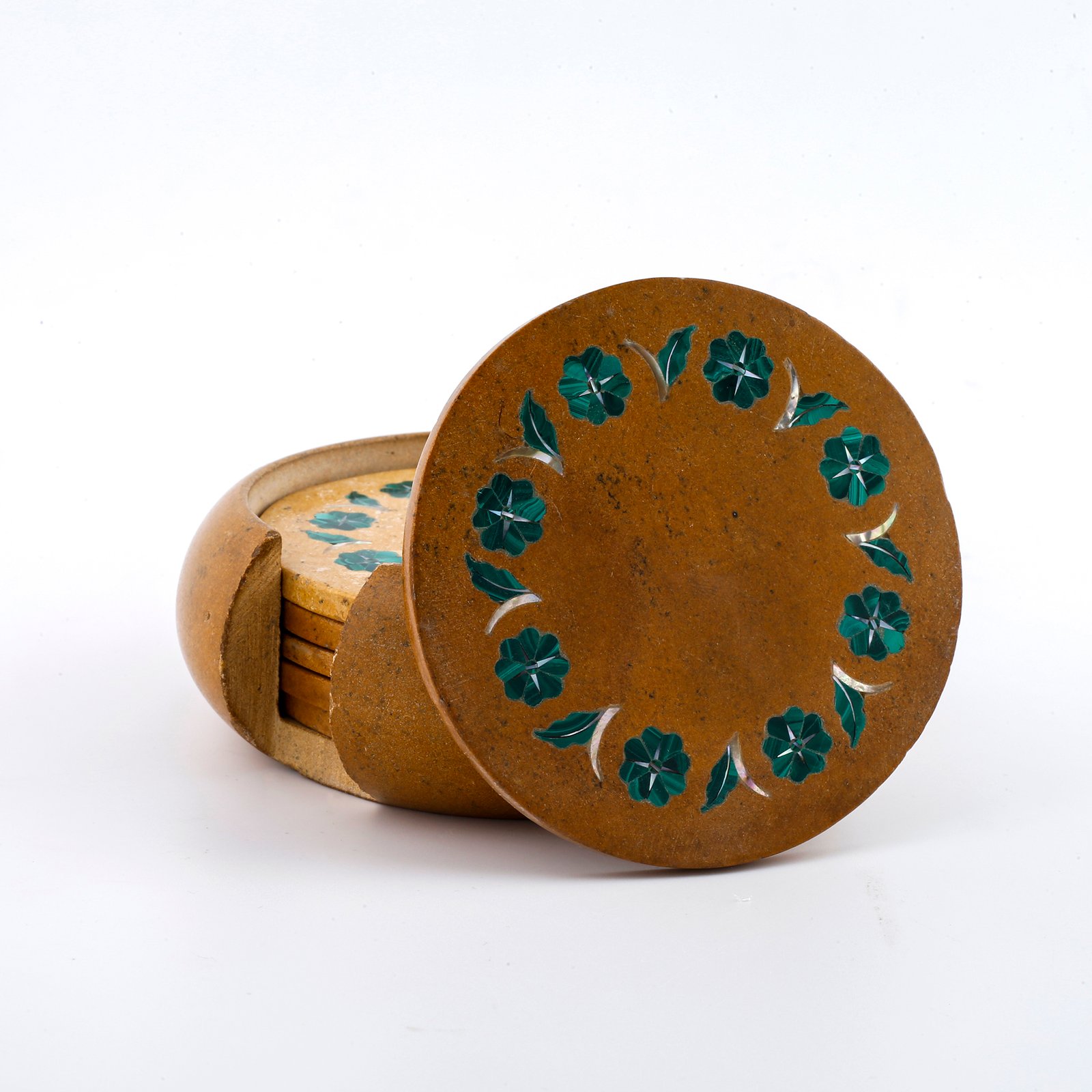 Each coaster is meticulously decorated with hand-cut semi-precious stones, skill fully inlaid by master artisans. The stones used in this design include: