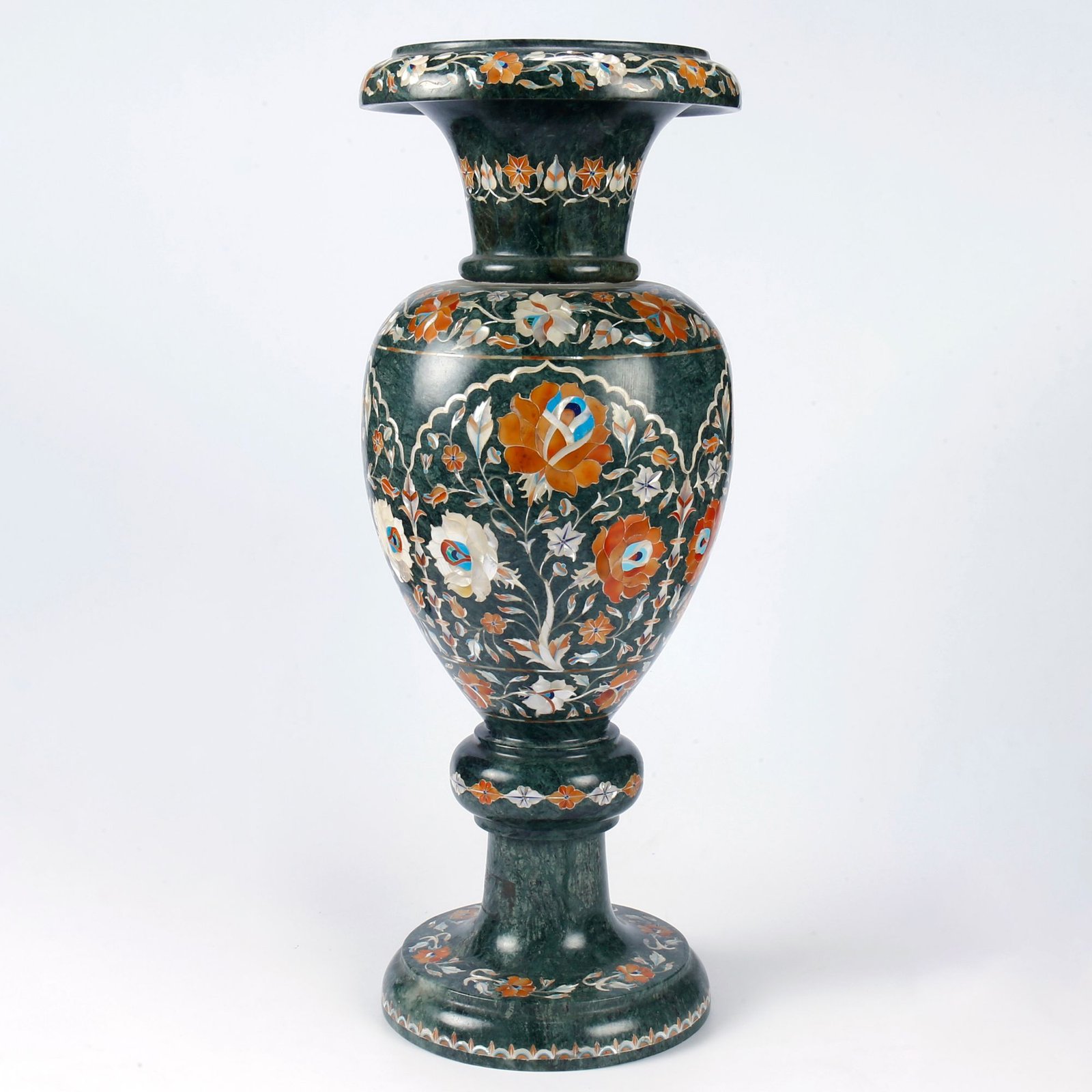 The decorative inlay work is created using carefully selected natural semi-precious stones, chosen for their color intensity, durability, and aesthetic harmony: