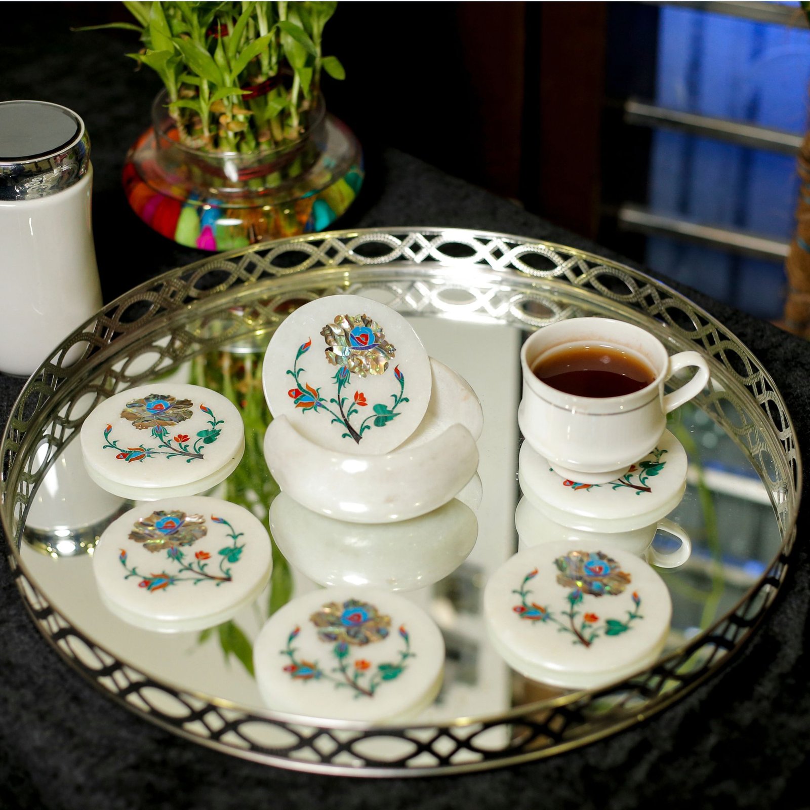 Traditional floral pietra dura inlay with intricate detailing