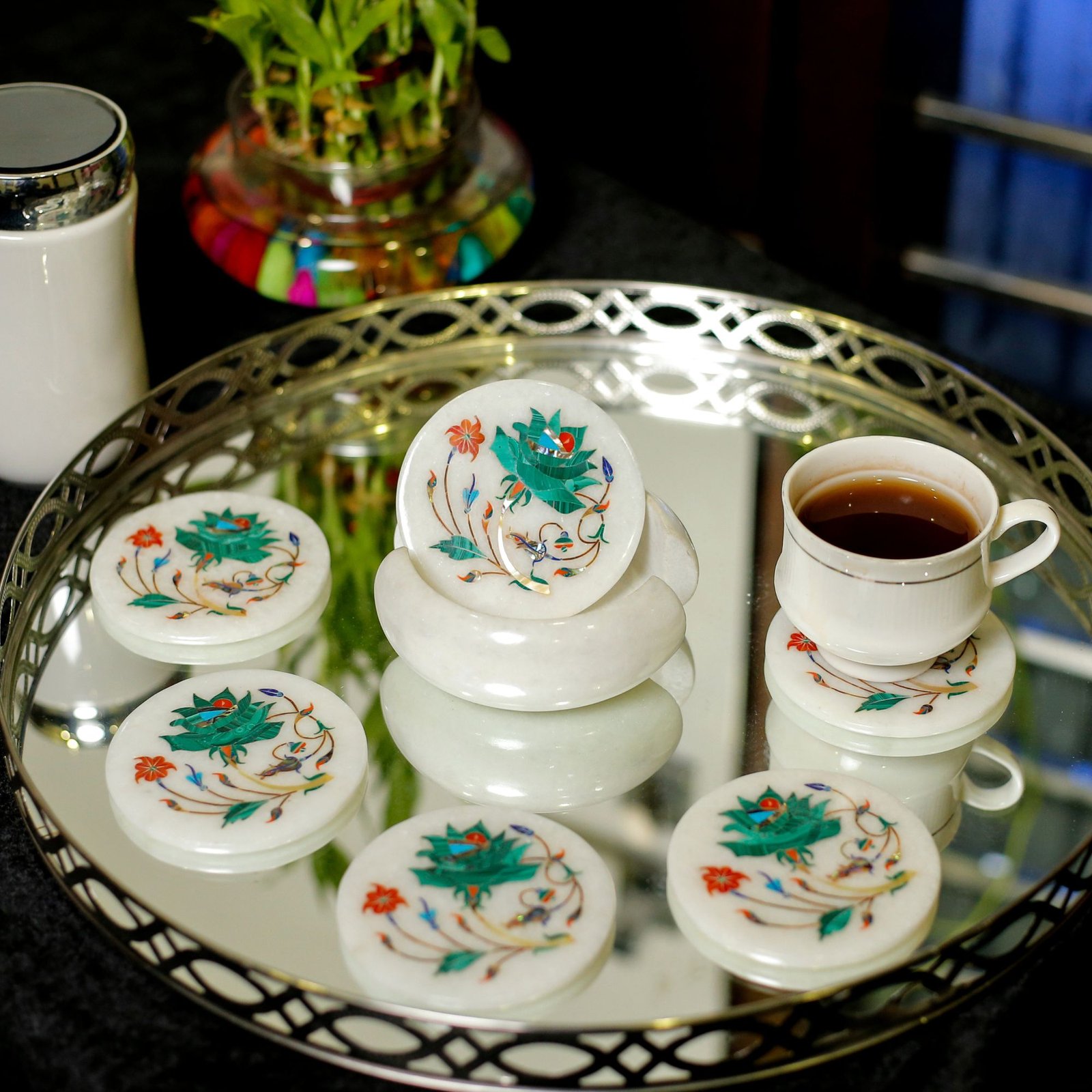 Traditional floral inlay work inspired by Mughal-era artistry