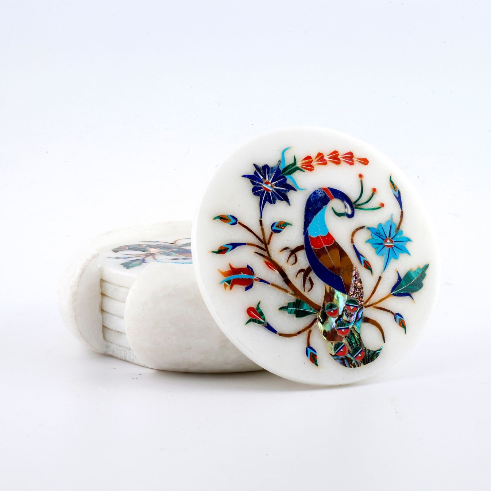Traditional peacock and floral pietra dura inlay design