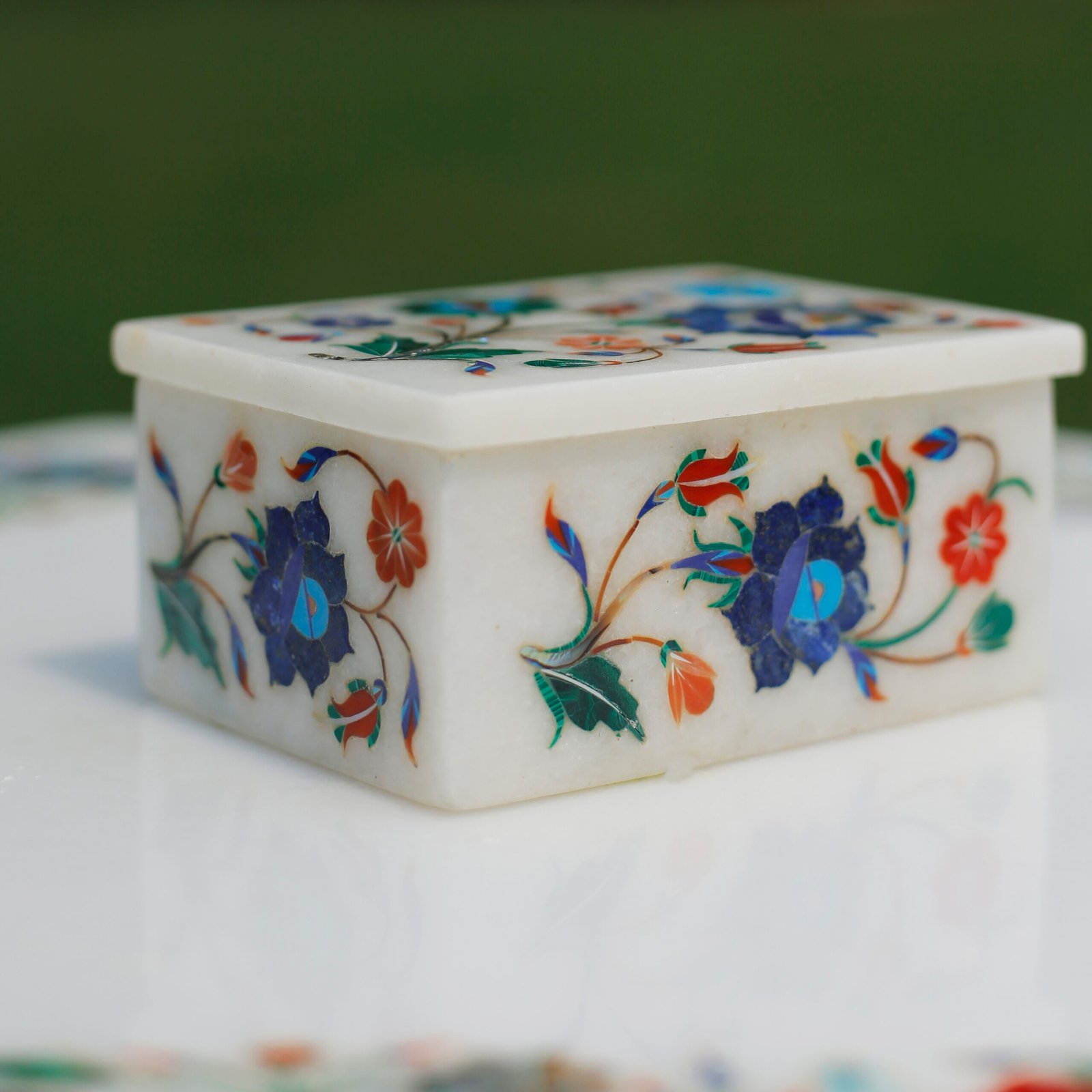 Each marble inlay jewellery box is a one-of-a-kind creation, showcasing over 20 years of craftsmanship excellence and preserving the rich marble art heritage of Agra.