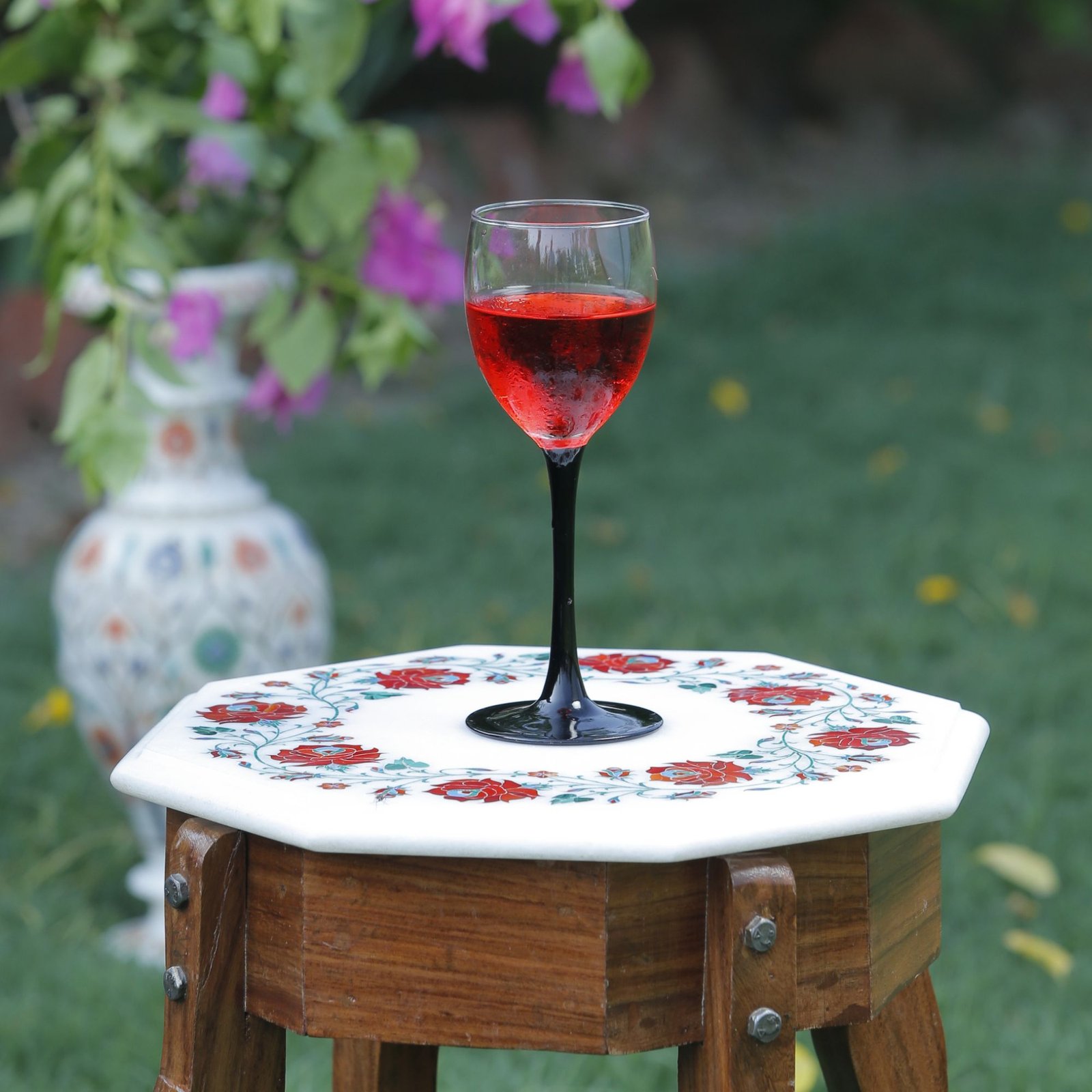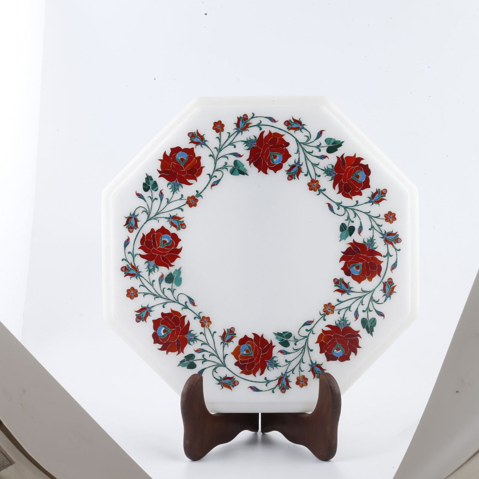 The floral inlay work is created using carefully selected natural semi-precious stones, chosen for their color vibrancy and durability:
