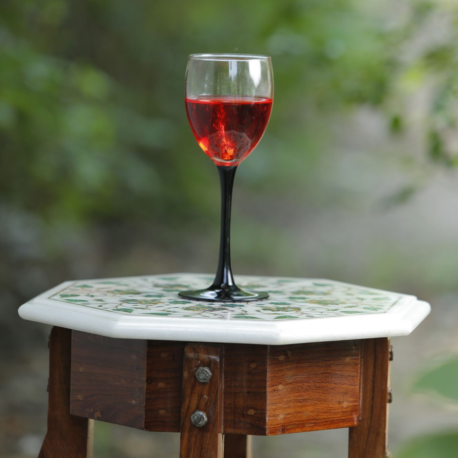 The detailed inlay work is created using carefully selected natural semi-precious stones, each hand-cut and precisely fitted by skilled artisans: