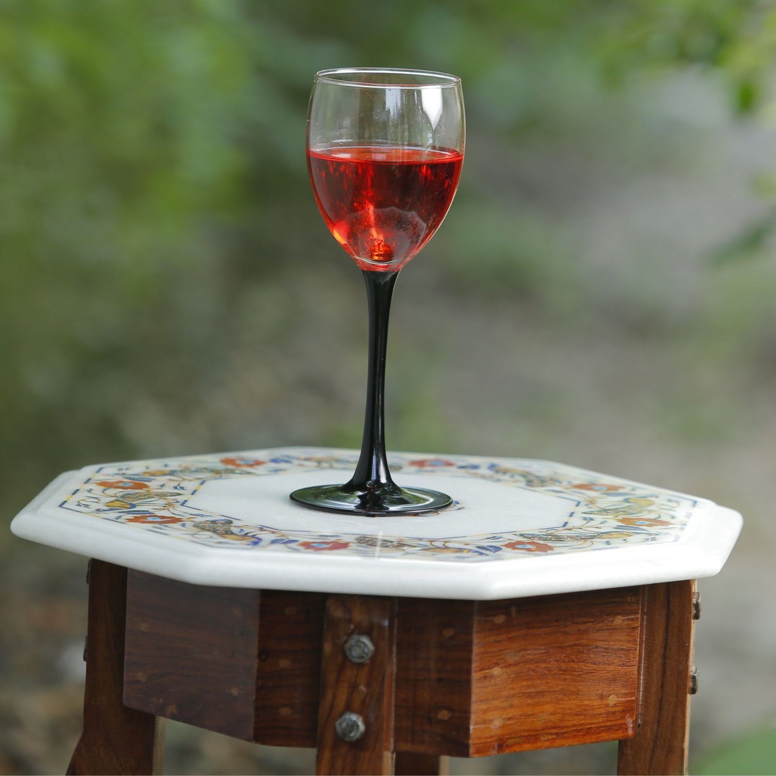 The intricate marble inlay work is executed using carefully selected natural semi-precious stones, each hand-cut and precisely fitted by skilled artisans: