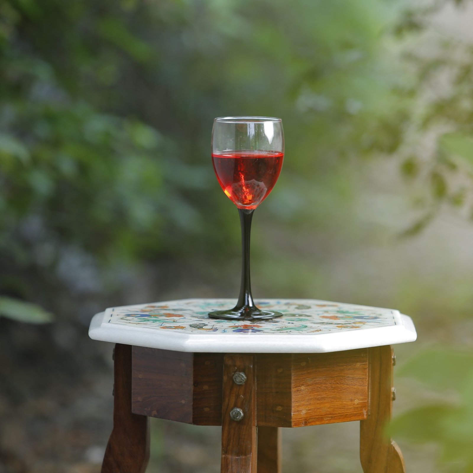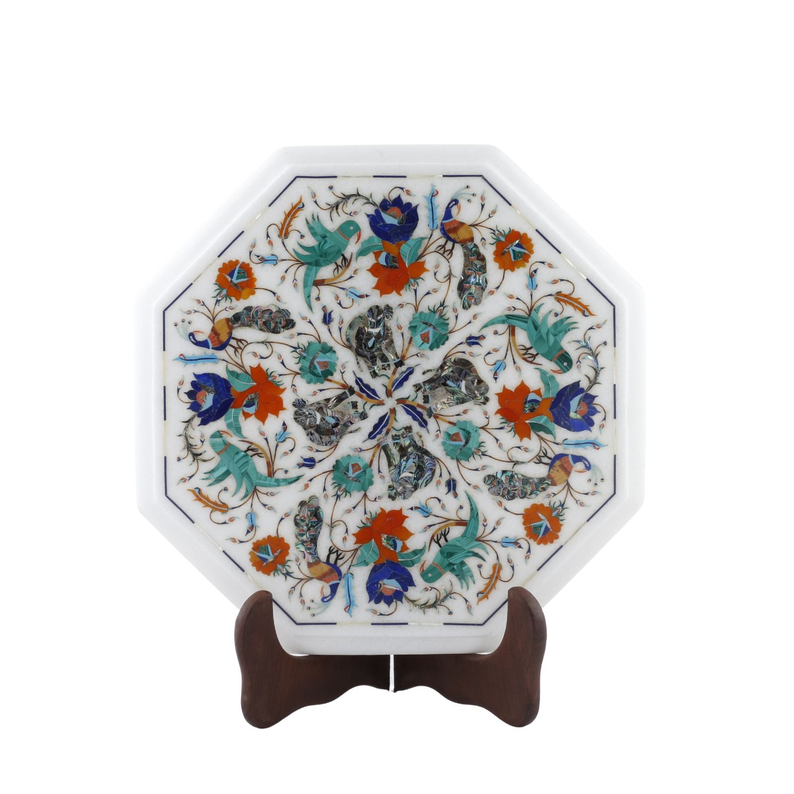 The intricate inlay work is executed using carefully selected natural semi-precious stones, traditionally employed in Pietra Dura art: