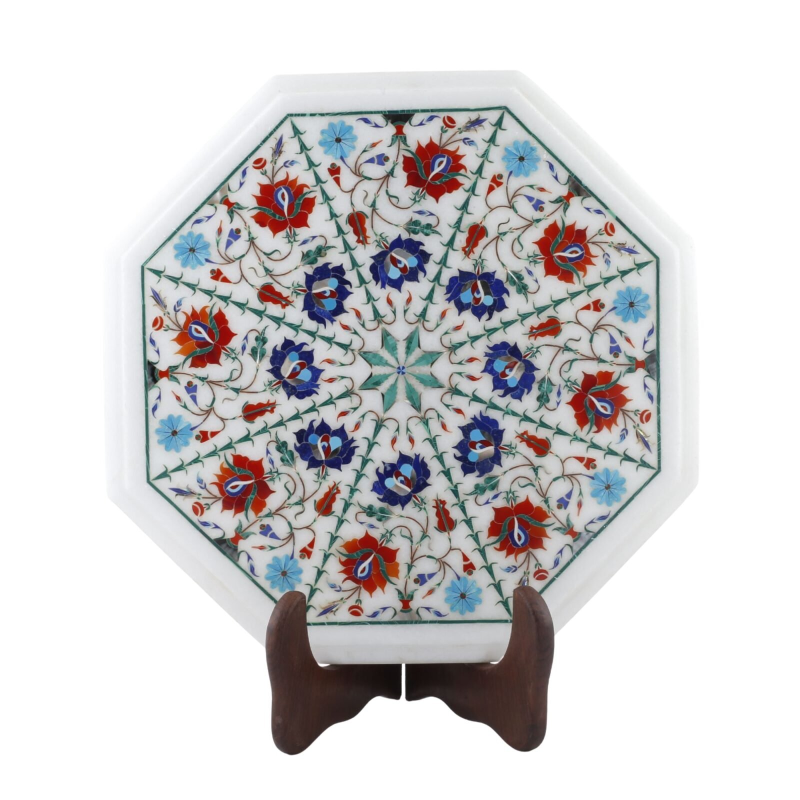 Material: Natural white marble with semi-precious stone inlay