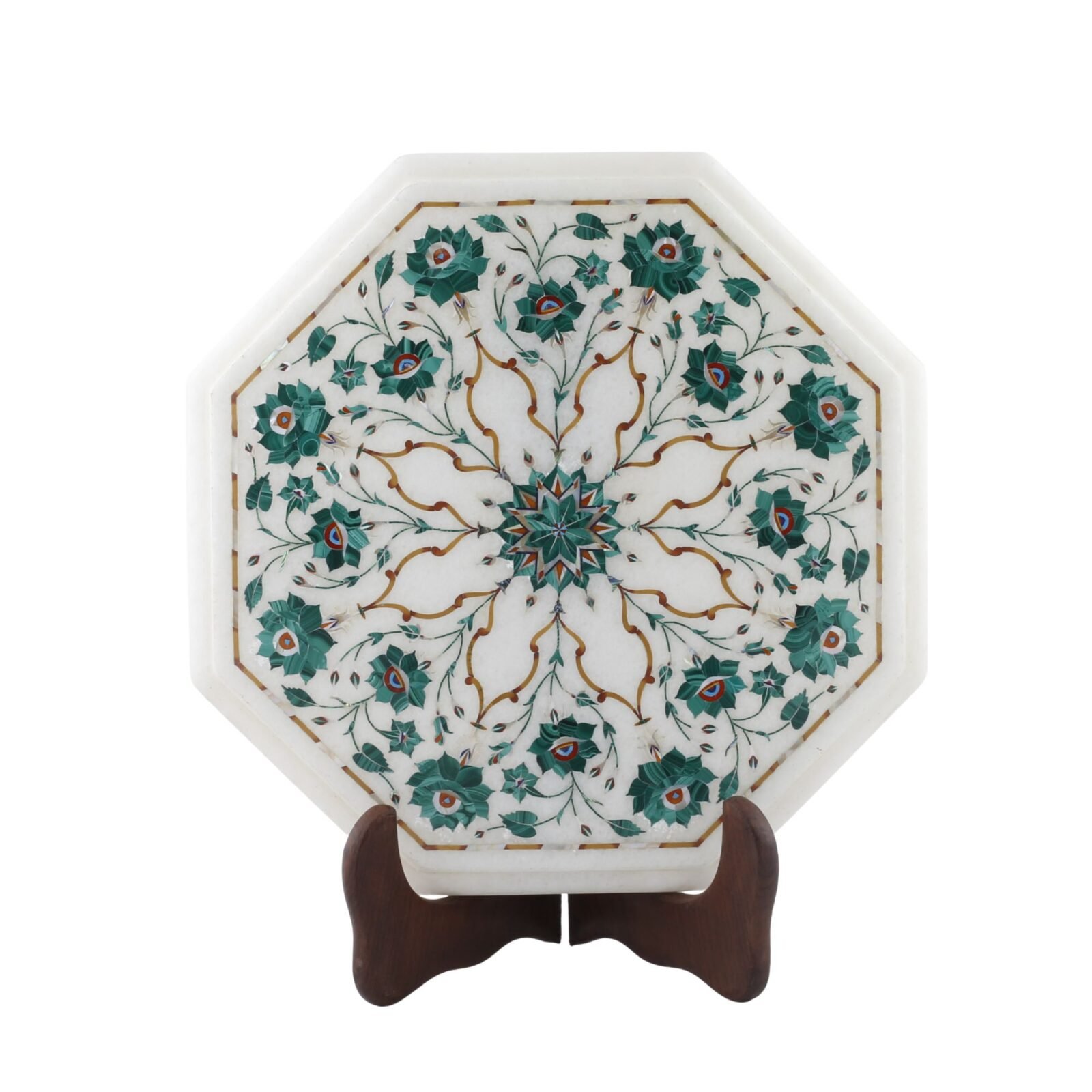 Material: Natural white marble with semi-precious stone inlay