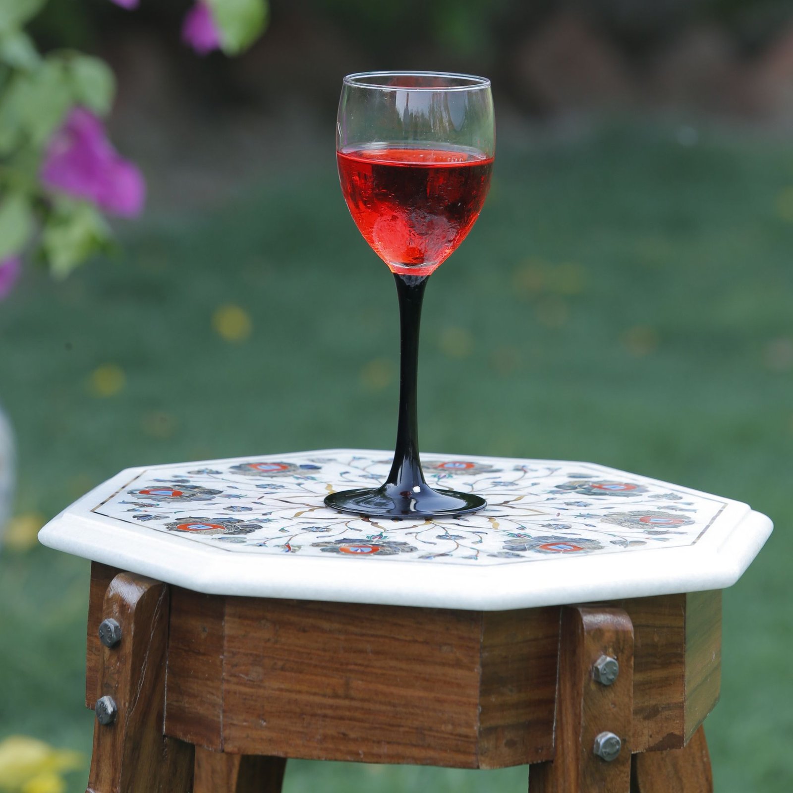 Each stone is precision-cut and hand-polished, then securely set into the marble to ensure a seamless, long-lasting finish.