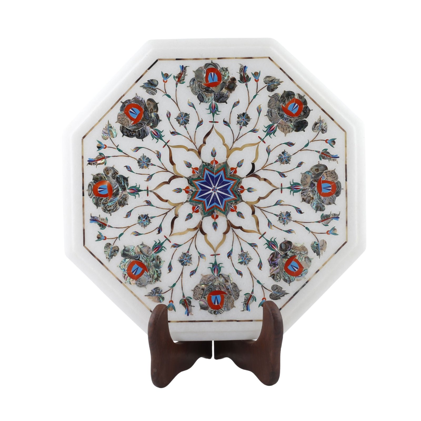 • Material: Natural white marble with semi-precious stone inlay